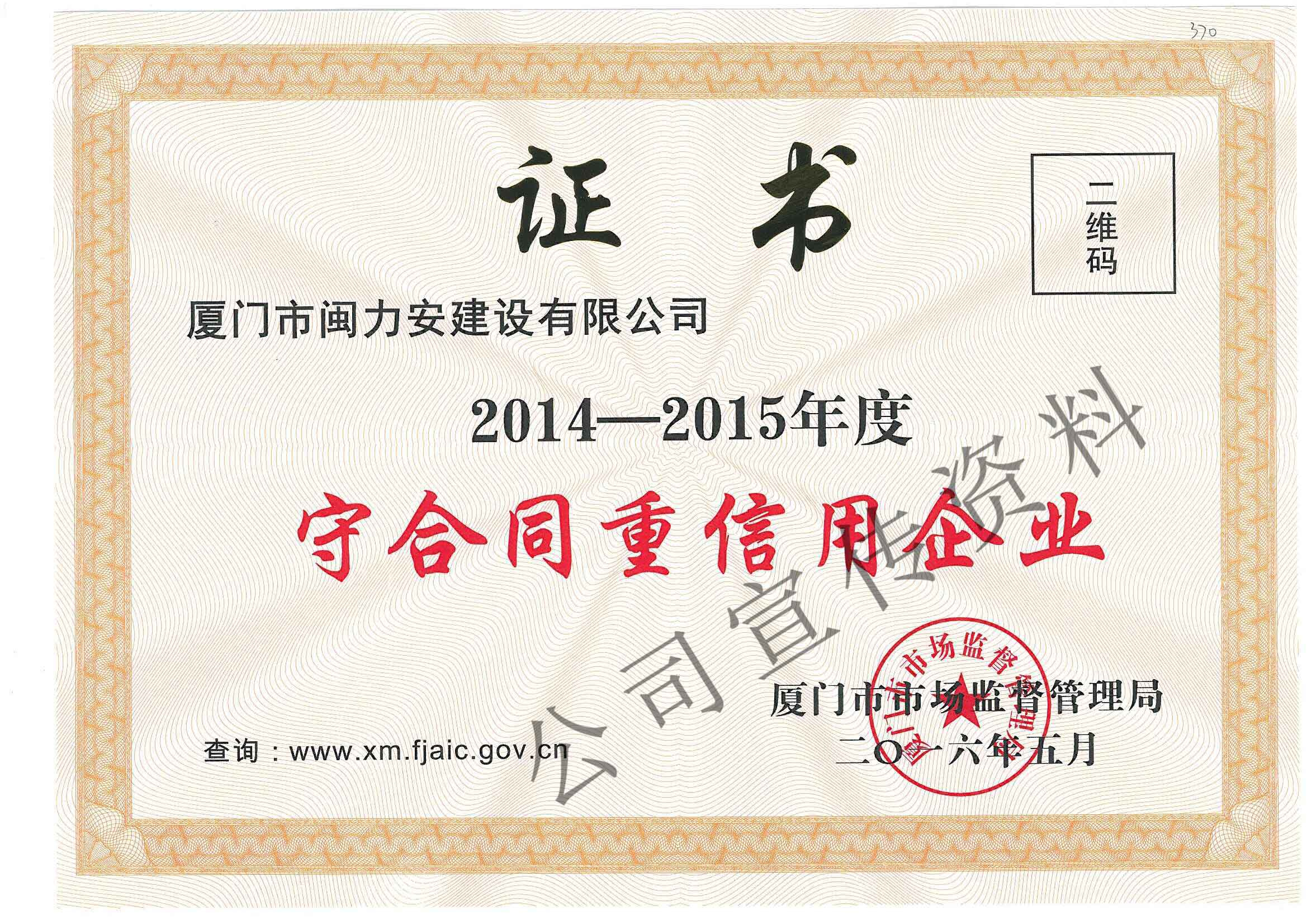 廈門市閩力安建設(shè)有限公司成立于2003年,公司取得市政公用工程施工總承包貳級、建筑裝修裝飾工程專業(yè)承包壹級、城市及道路照明工程專業(yè)承包壹級、電子與智能化工程專業(yè)承包貳級、消防設(shè)施工程專業(yè)承包貳級、電力工程施工總承包叁級、建筑機(jī)電安裝工程專業(yè)承包叁級、輸變電工程專業(yè)承包叁級、環(huán)保工程專業(yè)承包叁級、照明工程設(shè)計(jì)專項(xiàng)甲級、建筑裝飾工程設(shè)計(jì)乙級、施工勞務(wù)等資質(zhì)的綜合型企業(yè),公司于2013年通過了ISO9001質(zhì)量體系認(rèn)證,ISO14001環(huán)境管理體系認(rèn)證,OHSAS18001職業(yè)健康安全管理體系認(rèn)證。